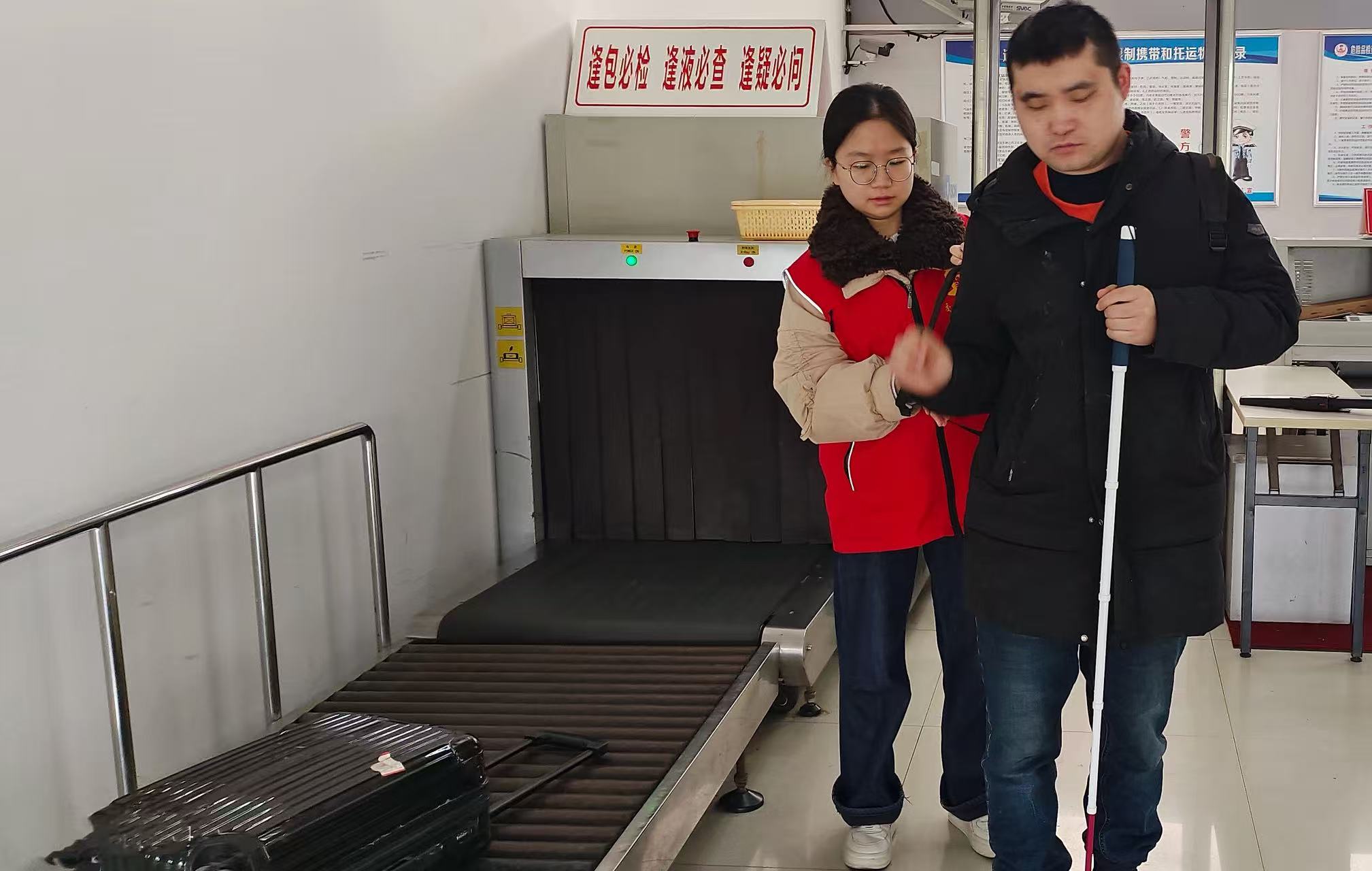 虽无法看见工作人员和志愿者的面容,但旅客真切感受到了无微不至的关怀与暖意,全程连连道谢,朴实的言语中满是真挚的感动与谢意。