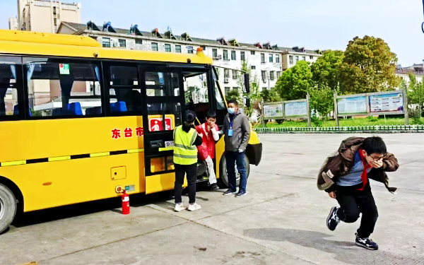 员应急处置、协同救援及突发事件快速反应能力,近日,东台市东宇校车服务有限公司分别联合新曹农场学校、梁垛小学等多所学校,有序开展校车突发事件应急逃生实战演练。